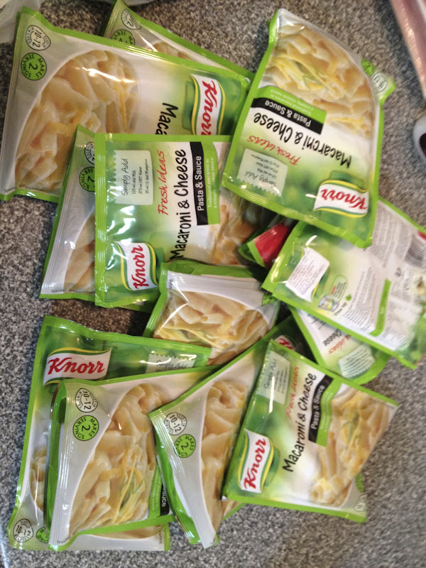 The boys and I will be leaving in about 4 1/2 weeks to go back to Oklahoma for the summer but Kenny will have to stay until the middle of July. He is going to come later so he can fly back with us in August. Since he will be here for over a month without us I have tried to make things a little easier on him for dinner time by preparing some frozen food. Last weekend I made about 15 pizza's for him and today I was lucky enough to run across his favorite mac-n-cheese here. Katie was nice enough to let me hoard it all so Kenny will have something to eat. :-) We should also have a few packages of hamburger meat left so he can have pizza, hamburgers and mac-n-cheese for 6 weeks. :-)